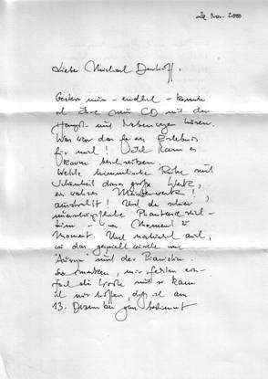 Sie, lieber Theo Breuer, haben mir mit diesem Buch ein wirklich bewegendes, so unerwartet schönes Geschenk gemacht! - und naturgemäß war Ihrer beider Freundschaft als Schriftsteller (& eben auch wie er als Herausgeber!) sicherlich & ganz offensichtlich eine um vielfaches tiefere als meine als Musiker zu ihm [... obwohl er sich auch an meinen kleinen "Nebengleis", den Dreizeilern erfreute ... sie sogar lobte, was mich beschämte.]
