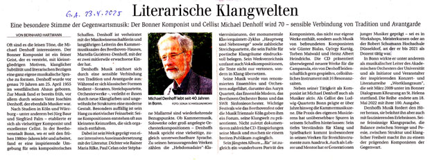 War heute den ganzen Tag mit meiner Frau und zwei guten Freundinnen im Siebengebirge unterwegs, fand Ihre Nachricht eben .., so dies für heute immerhin noch. Herzlichst natürlich Michael Denhoff