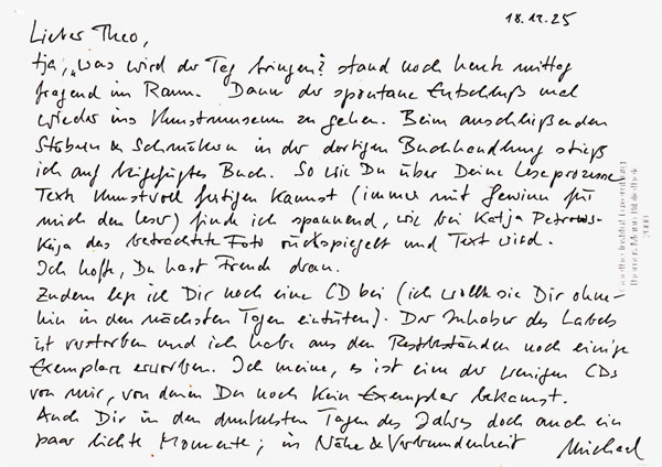lieber Theo : mit dem Schreiben über das nicht mehr Schreiben-Wollen /-Können entstand dann doch