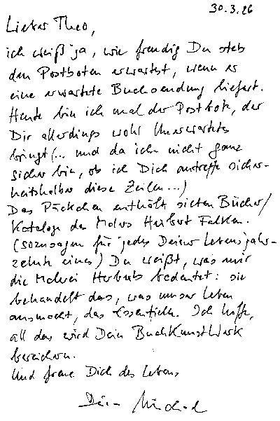 Mo, 30. März 2026 (Karte zum persönlich überbrachten Buckpaket mit Katalogen von Herbert Falken)